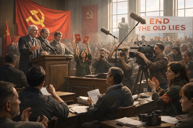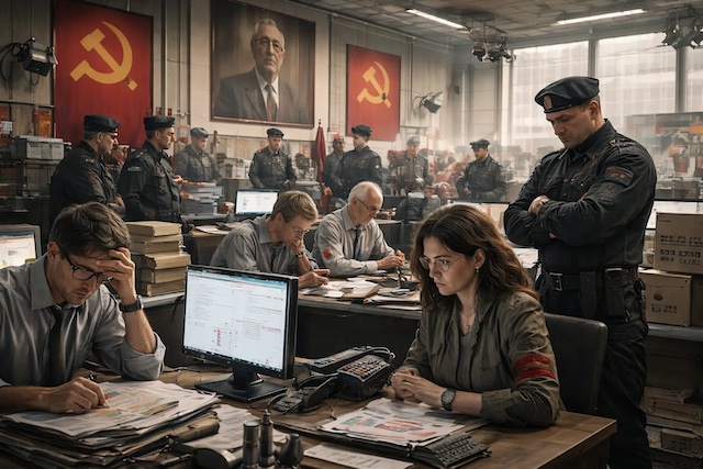 Early on, journalists are told they’re helping end the “old lies.” Investigative reporting is reframed as sabotage. Neutrality becomes complicity. Words are assigned moral weight.
